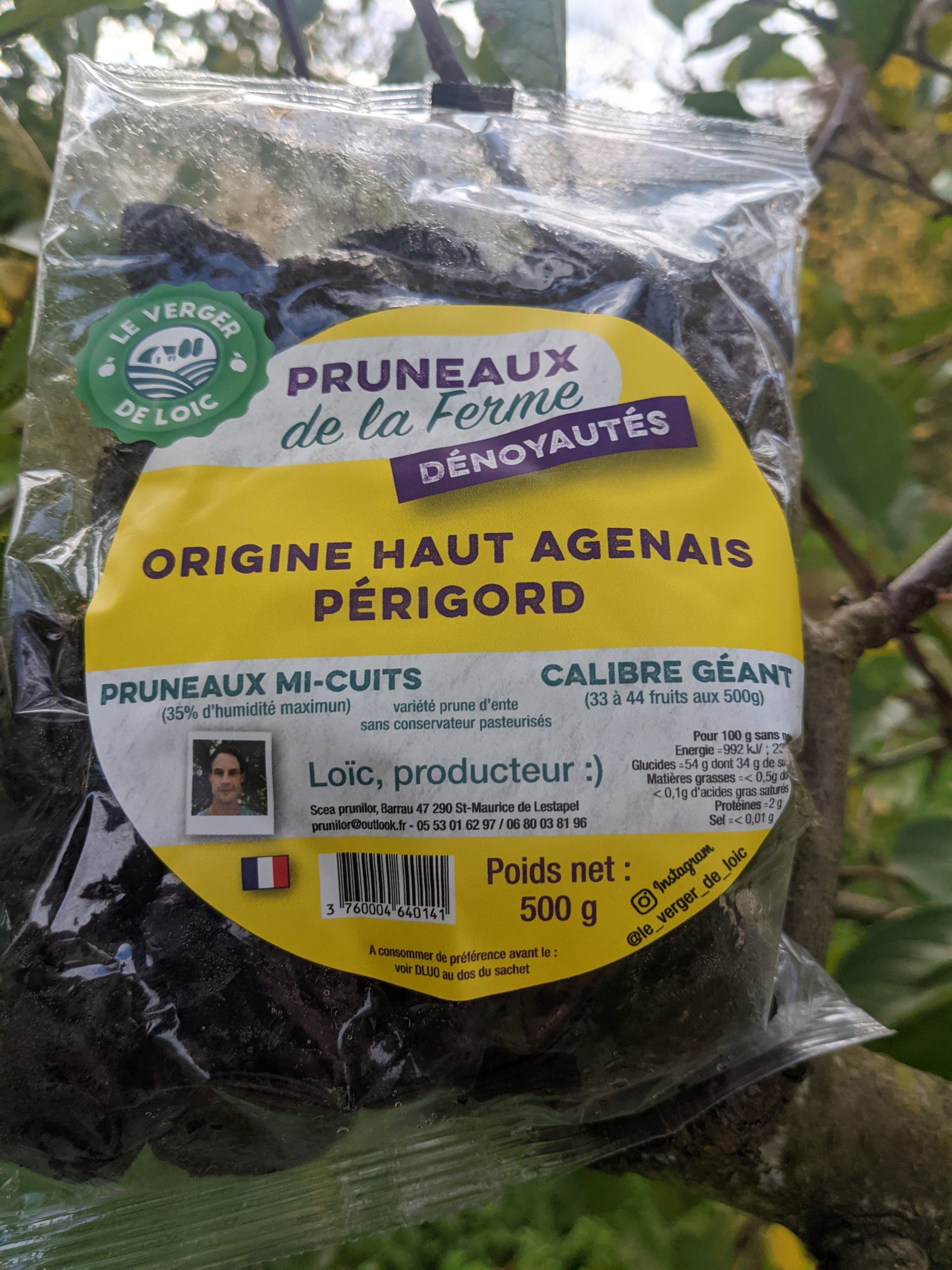 Pruneaux mi-cuits géants dénoyautés variété prune d’Ente 500g